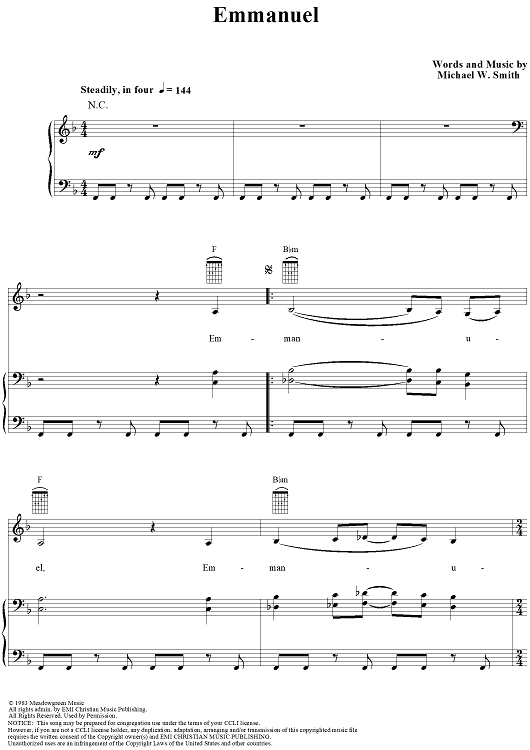 Digital Sheet Music for Emmanuel by Michael W. Smith, Amy Grant scored for Piano/Vocal/Chords; id:112096