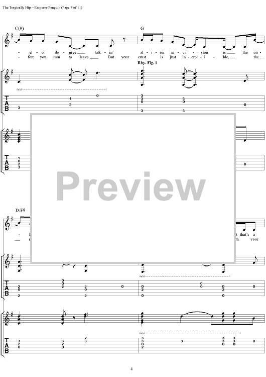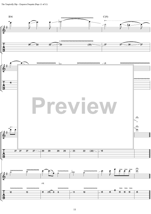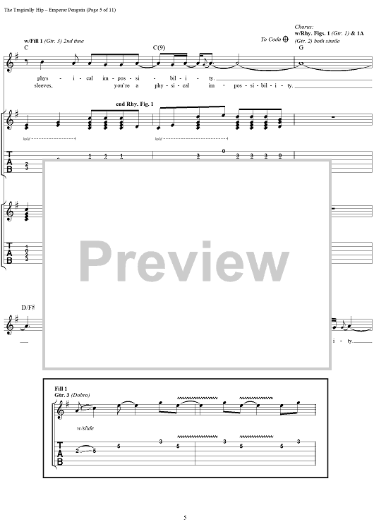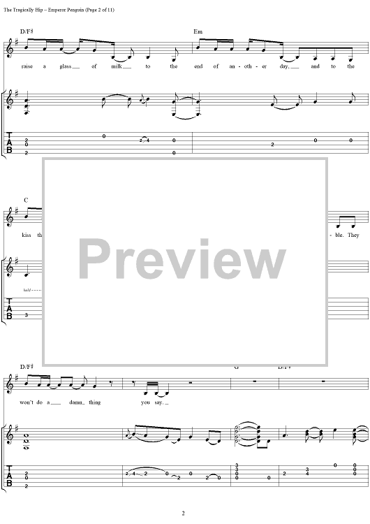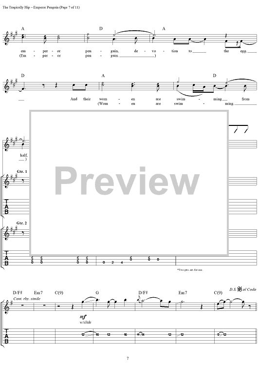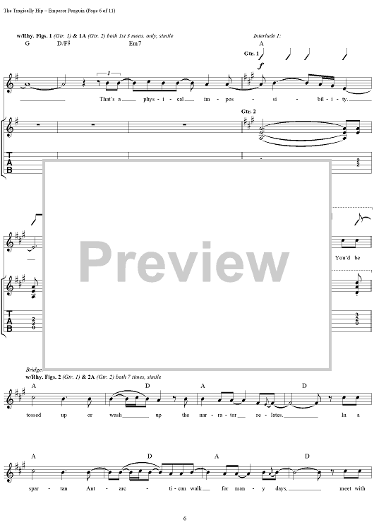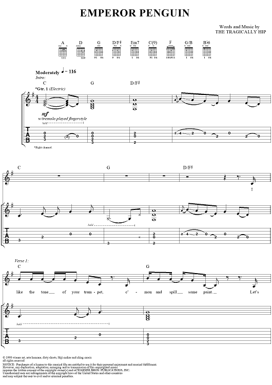 "Emperor Penguin" Sheet Music by The Tragically Hip