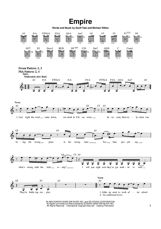 Digital Sheet Music for Empire by Queensrÿche, Geoff Tate, Michael Wilton scored for Easy Guitar; id:370939