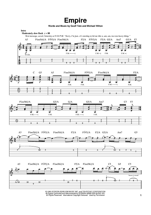 Digital Sheet Music for Empire by Queensrÿche, Geoff Tate, Michael Wilton scored for Guitar Tab; id:402582