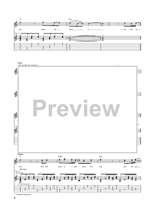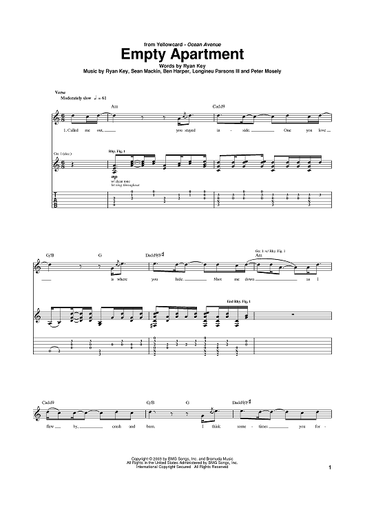 Digital Sheet Music for Empty Apartment by Ben Harper, Ryan Key, Sean Mackin, Peter Mosely, LP, Yellowcard scored for Guitar Tab; id:379226