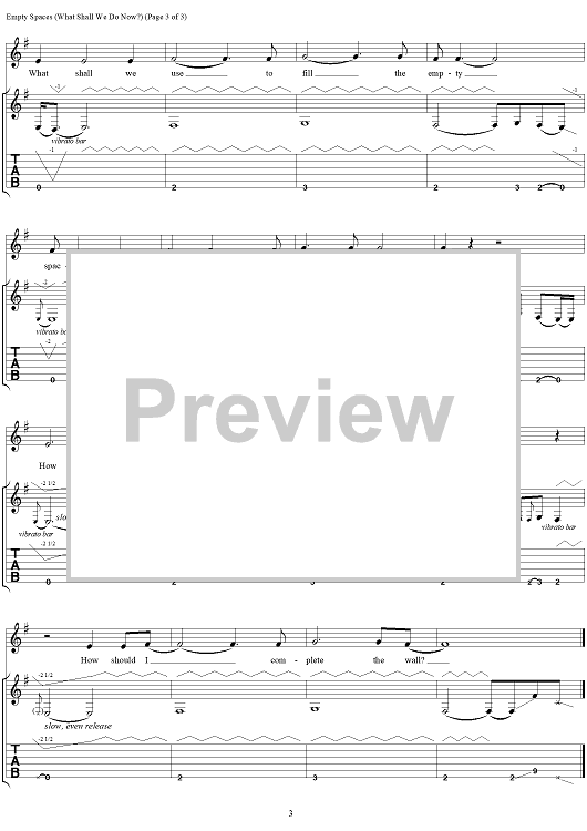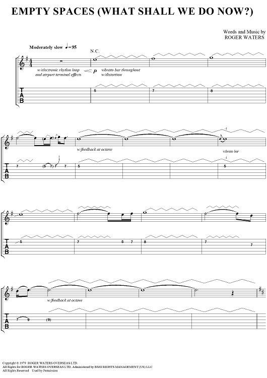 "Empty Spaces (What Shall We Do Now?)" Sheet Music by Pink Floyd