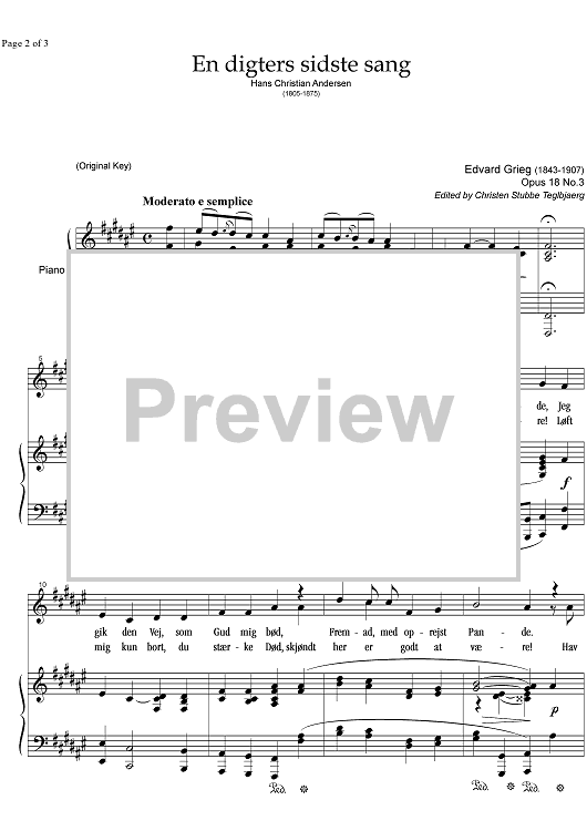 Digital Sheet Music for En digters sidste sang Op.18 No. 3 by , Edvard Grieg scored for Mezzo-soprano or Baritone/Piano; id:344095