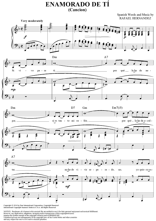 "Enamorado de Ti (Cancion)" Sheet Music by Rafael Hernández