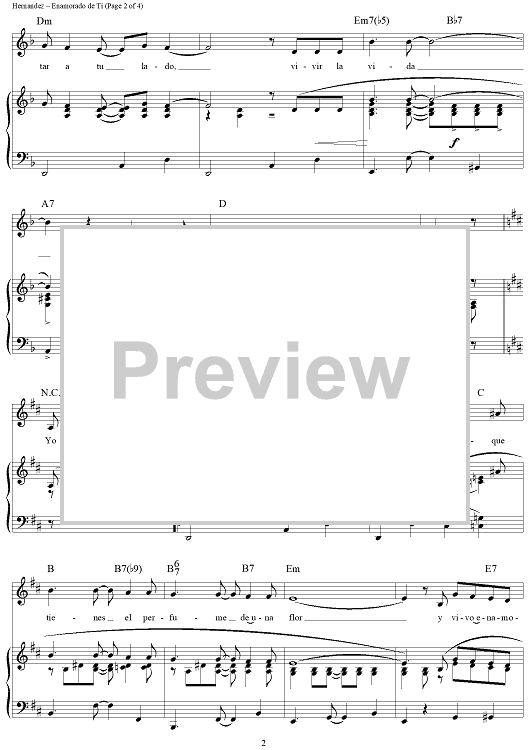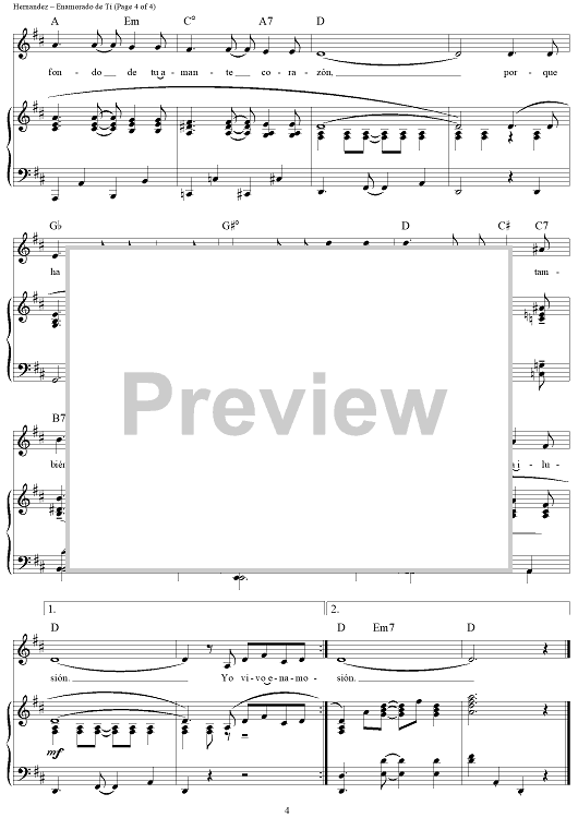 Digital Sheet Music for Enamorado de Ti (Cancion) by Rafael Hernández scored for Piano/Vocal/Chords; id:355102
