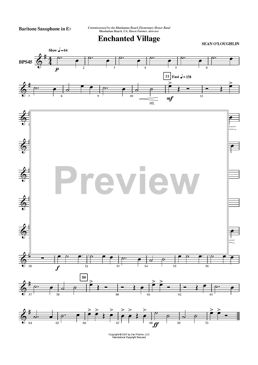 "Enchanted Village - Baritone Sax" Sheet Music by Sean O'Loughlin