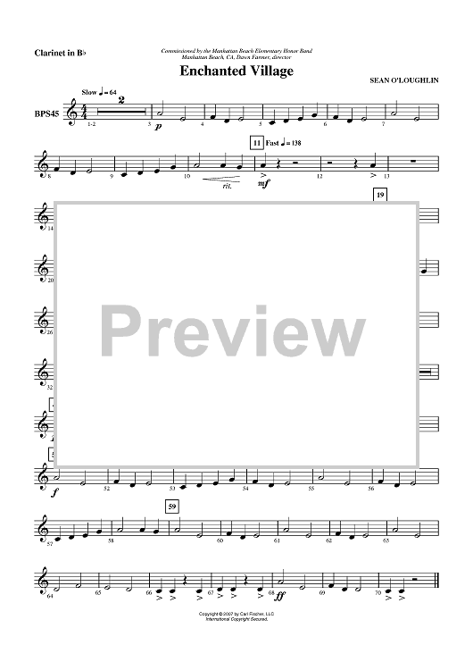 Digital Sheet Music for Enchanted Village - Clarinet in B-flat by Sean O'Loughlin scored for Concert Band; id:406966