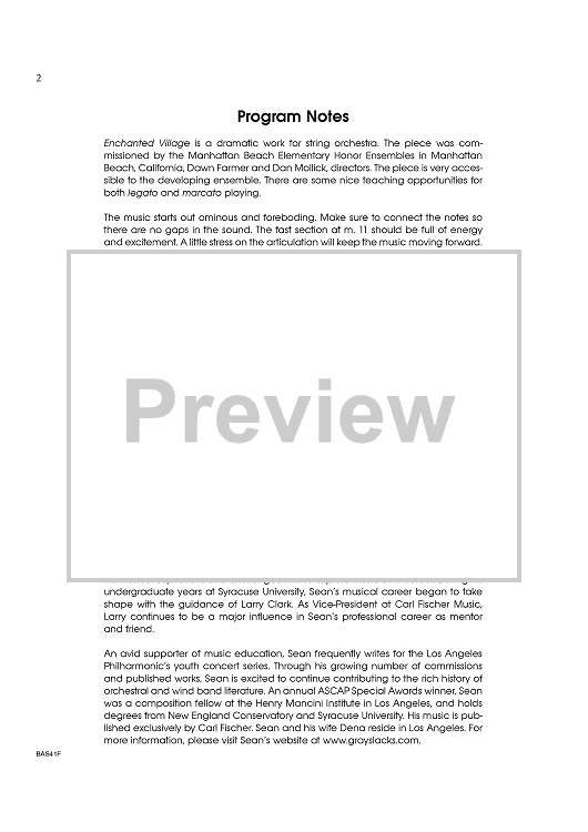 Digital Sheet Music for Enchanted Village - Score by Sean O'Loughlin scored for Orchestra; id:406730