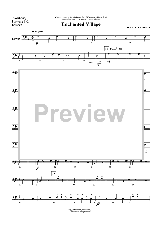 Digital Sheet Music for Enchanted Village - Trombone/Baritone BC/Bassoon by Sean O'Loughlin scored for Concert Band; id:406973