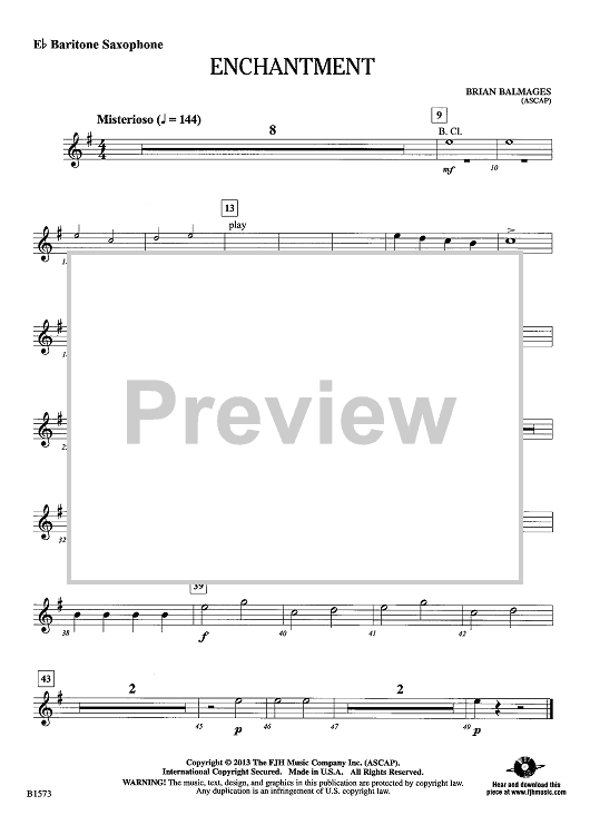Digital Sheet Music for Enchantment - Eb Baritone Sax by Brian Balmages scored for Concert Band; id:440506