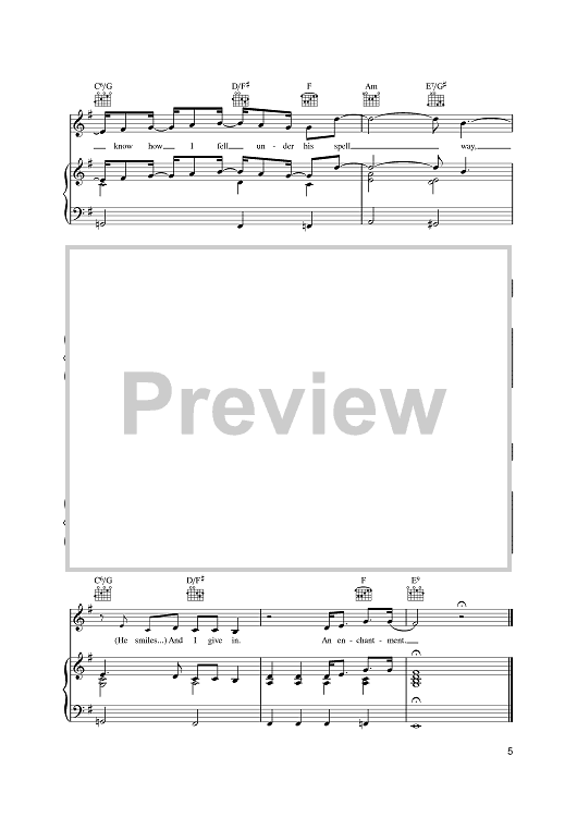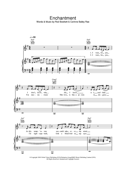 Digital Sheet Music for Enchantment by Corinne Bailey Rae, Rod Bowkett scored for Piano/Vocal/Chords; id:391167