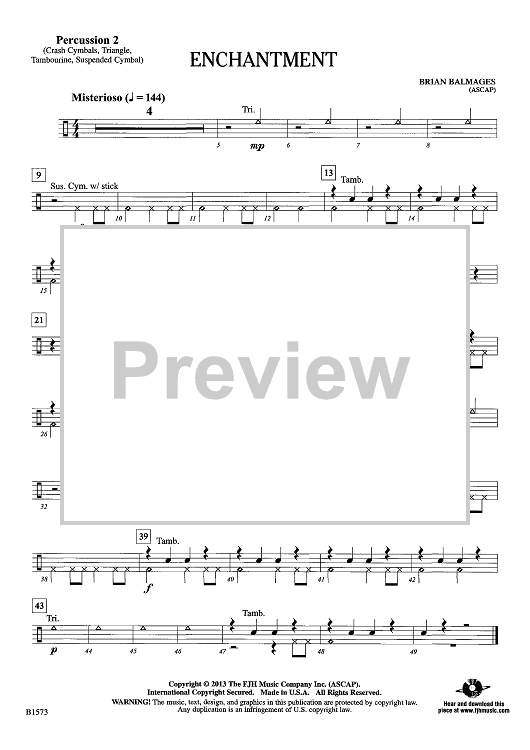 Digital Sheet Music for Enchantment - Percussion 2 by Brian Balmages scored for Concert Band; id:440516