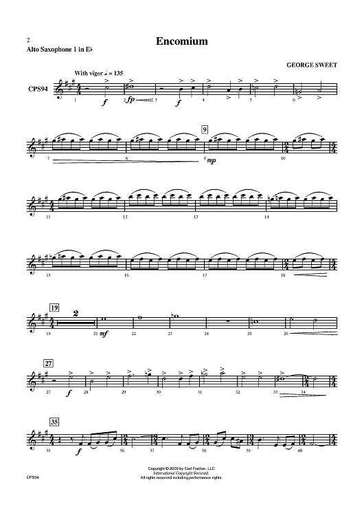 "Encomium - Alto Sax 1" Sheet Music by George Sweet