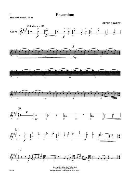 "Encomium - Alto Sax 2" Sheet Music by George Sweet