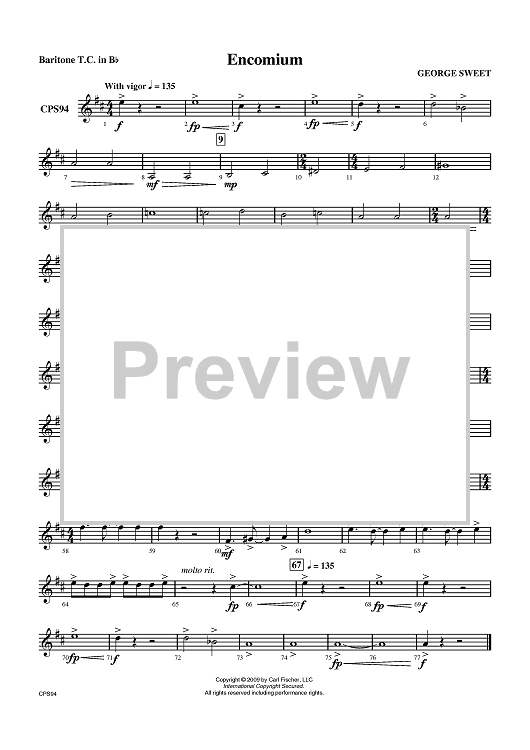 Digital Sheet Music for Encomium - Baritone (Treble Clef) by George Sweet scored for Concert Band; id:405810