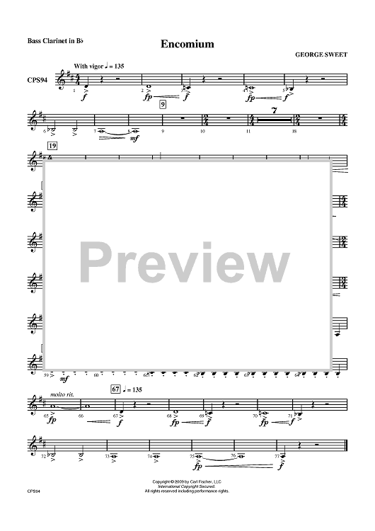 Digital Sheet Music for Encomium - Bass Clarinet by George Sweet scored for Concert Band; id:405796