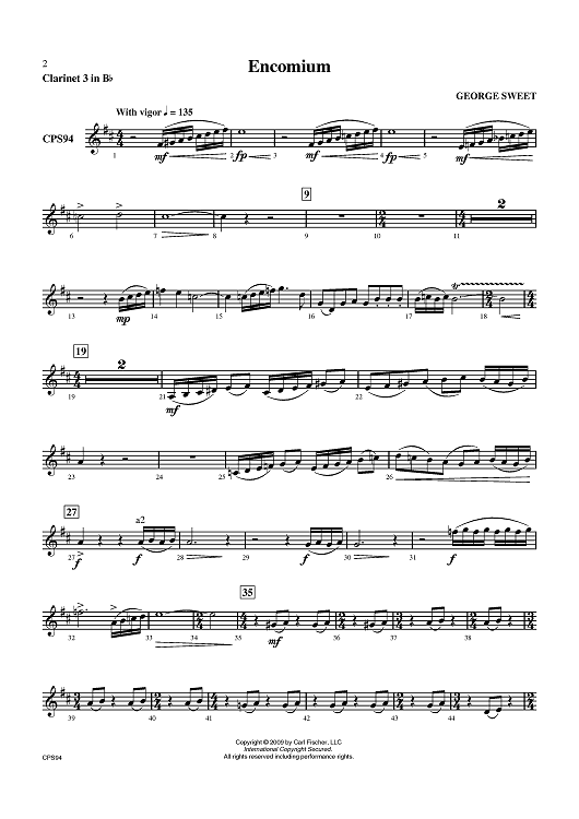 Digital Sheet Music for Encomium - Clarinet 3 in B-flat by George Sweet scored for Concert Band; id:405795