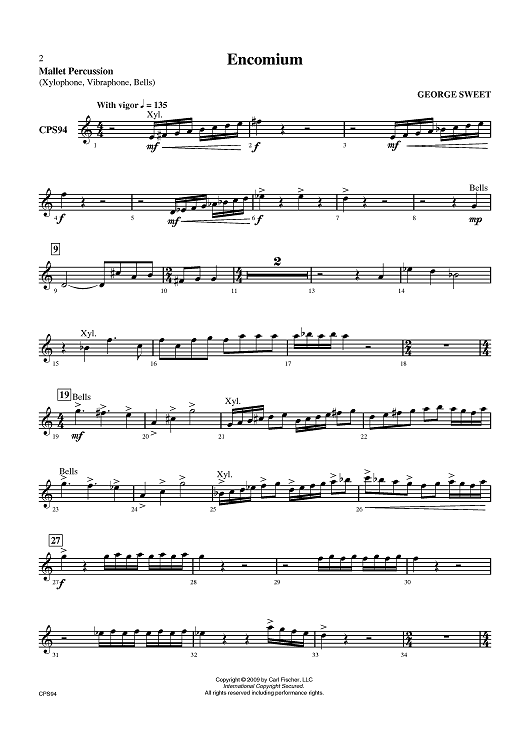 Digital Sheet Music for Encomium - Mallet Percussion by George Sweet scored for Concert Band; id:405814