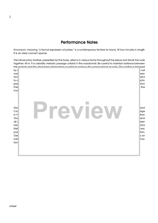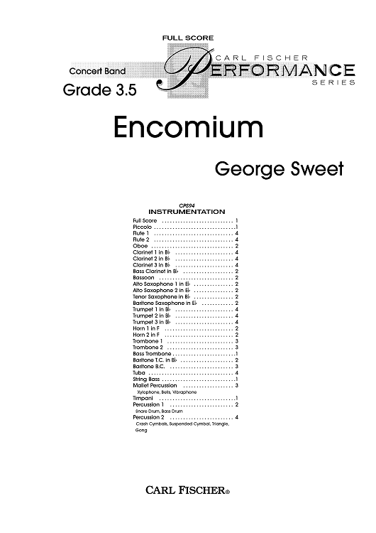 Digital Sheet Music for Encomium - Score by George Sweet scored for Concert Band; id:405788
