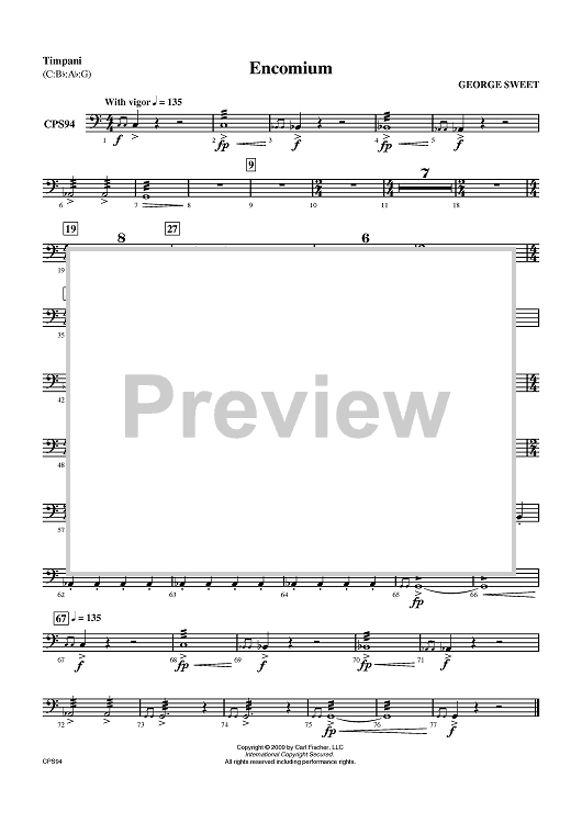Digital Sheet Music for Encomium - Timpani by George Sweet scored for Concert Band; id:405815