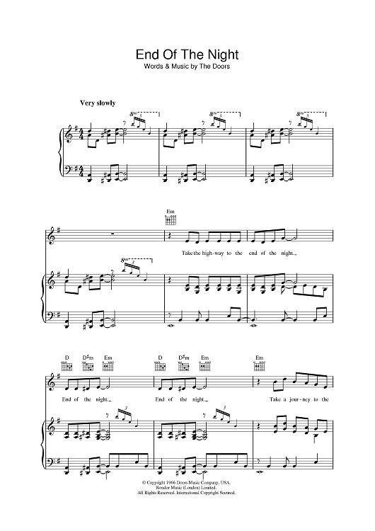 Digital Sheet Music for End Of The Night by The Doors scored for Piano/Vocal/Chords; id:390640