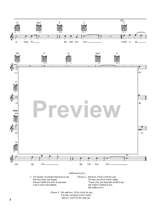 Digital Sheet Music for Endless Love by Mariah Carey, Lionel Richie, Diana Ross, Luther Vandross scored for Lead Sheet with Guitar Grids; id:383088