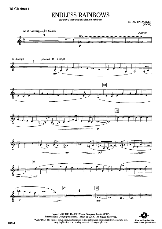 Digital Sheet Music for Endless Rainbows - Bb Clarinet 1 by Brian Balmages scored for Concert Band; id:440390