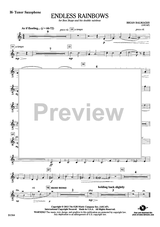 "Endless Rainbows - Bb Tenor Sax" Sheet Music by Brian Balmages