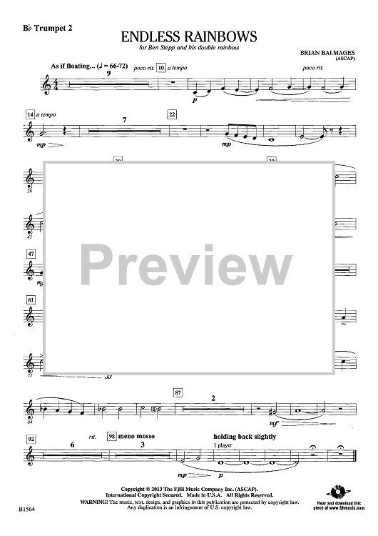 "Endless Rainbows - Bb Trumpet 2" Sheet Music by Brian Balmages