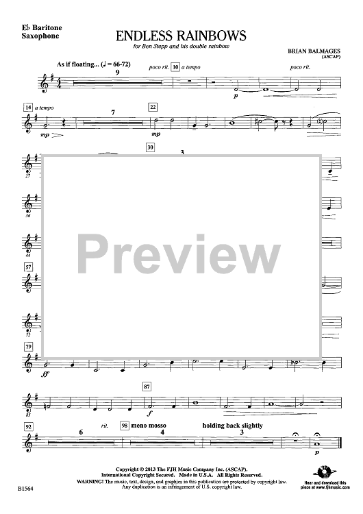 "Endless Rainbows - Eb Baritone Sax" Sheet Music by Brian Balmages