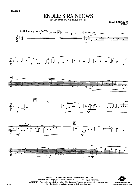"Endless Rainbows - F Horn 1" Sheet Music by Brian Balmages