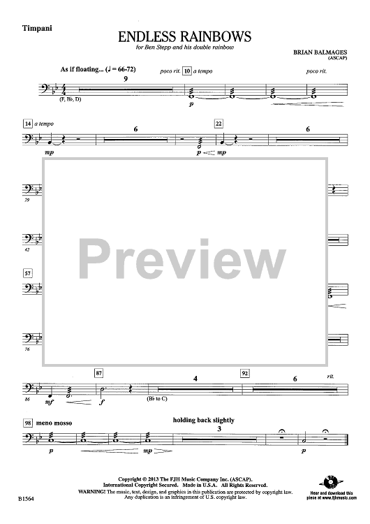 "Endless Rainbows - Timpani" Sheet Music by Brian Balmages