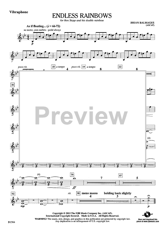 Digital Sheet Music for Endless Rainbows - Vibraphone by Brian Balmages scored for Concert Band; id:440412