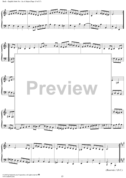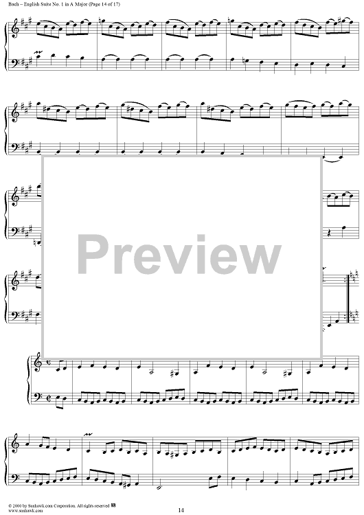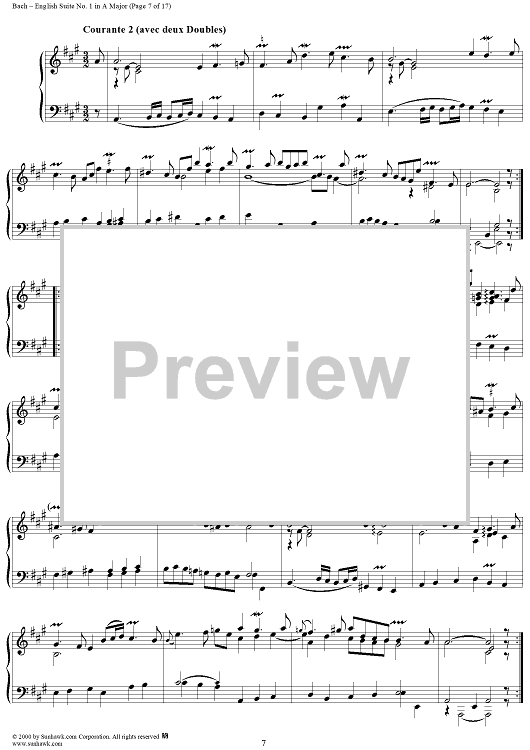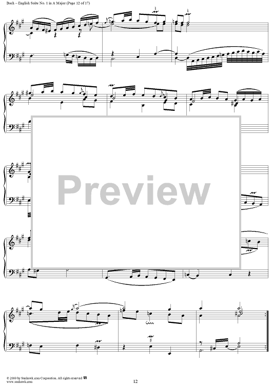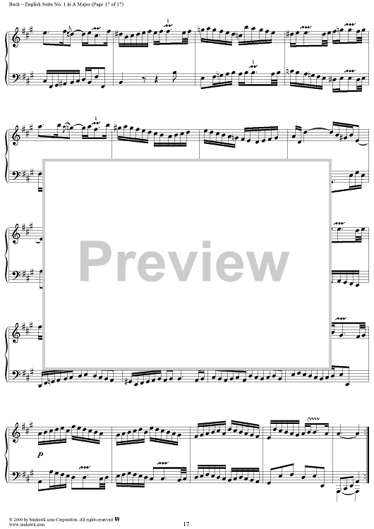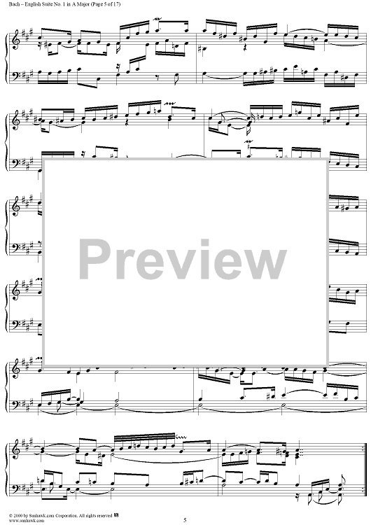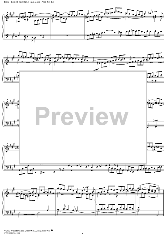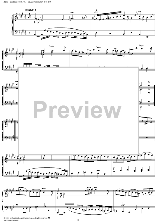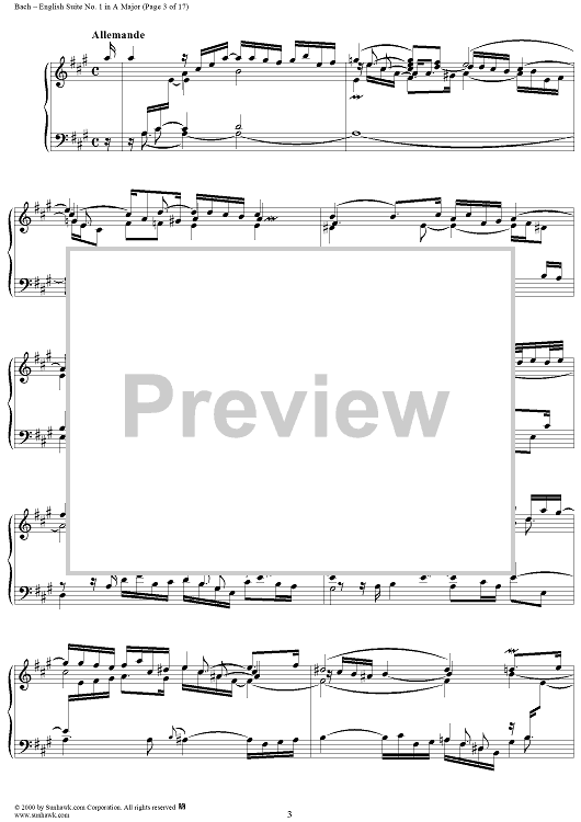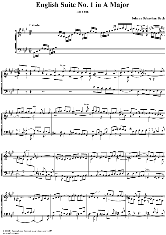 Digital Sheet Music for English Suite No. 1 in A Major (BWV806) by Johann Sebastian Bach scored for Piano Solo; id:234735
