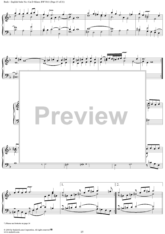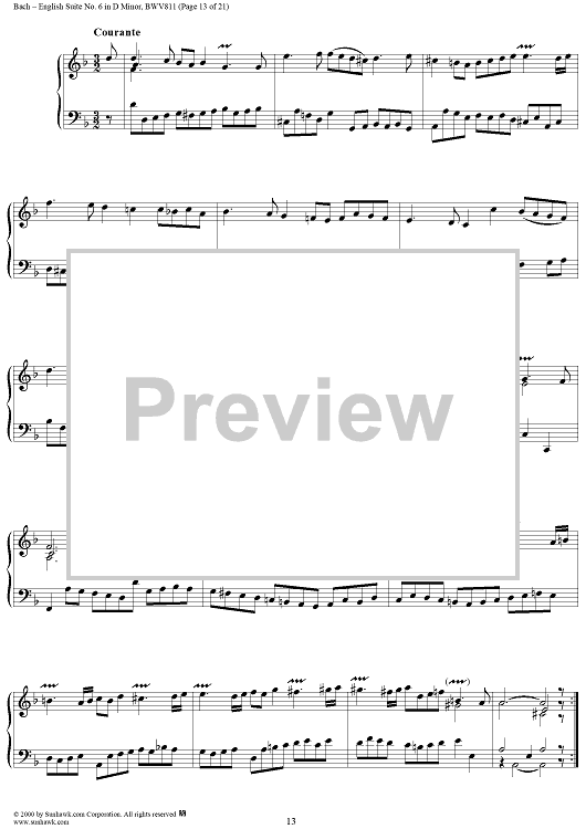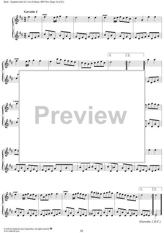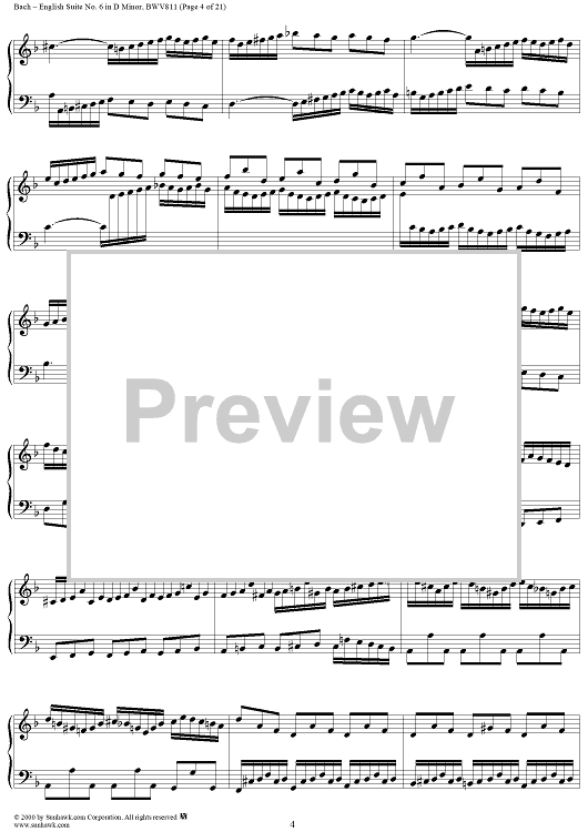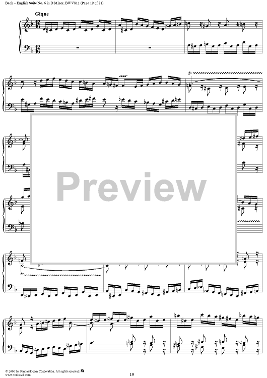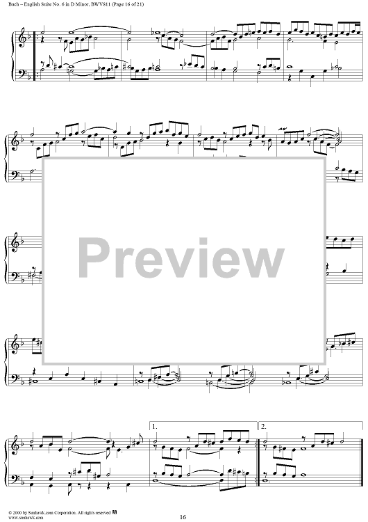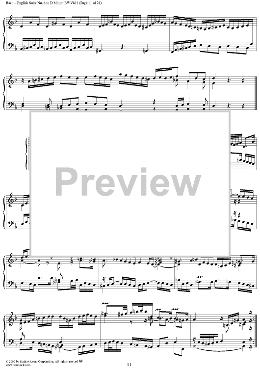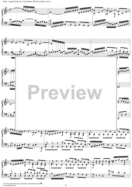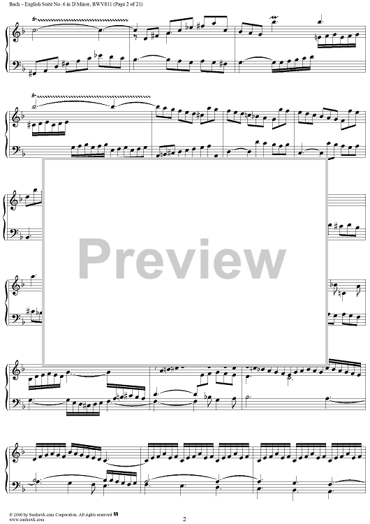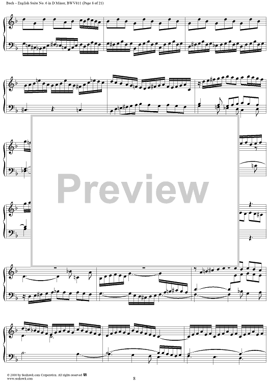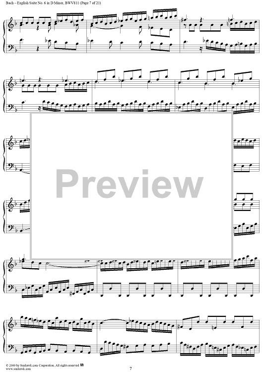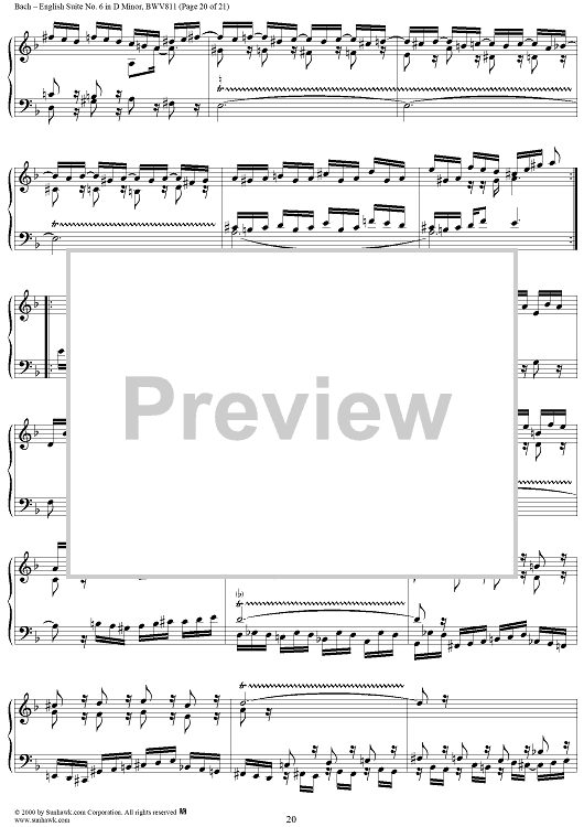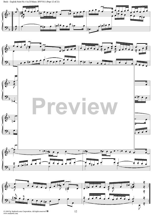 Digital Sheet Music for English Suite No. 6 in D Minor (BWV811) by Johann Sebastian Bach scored for Piano Solo; id:234008