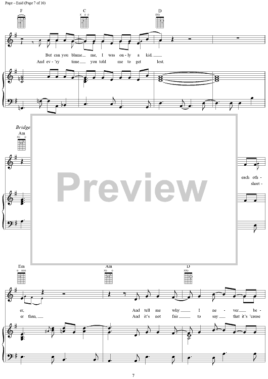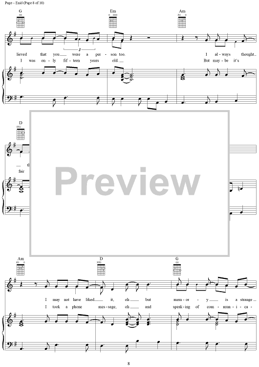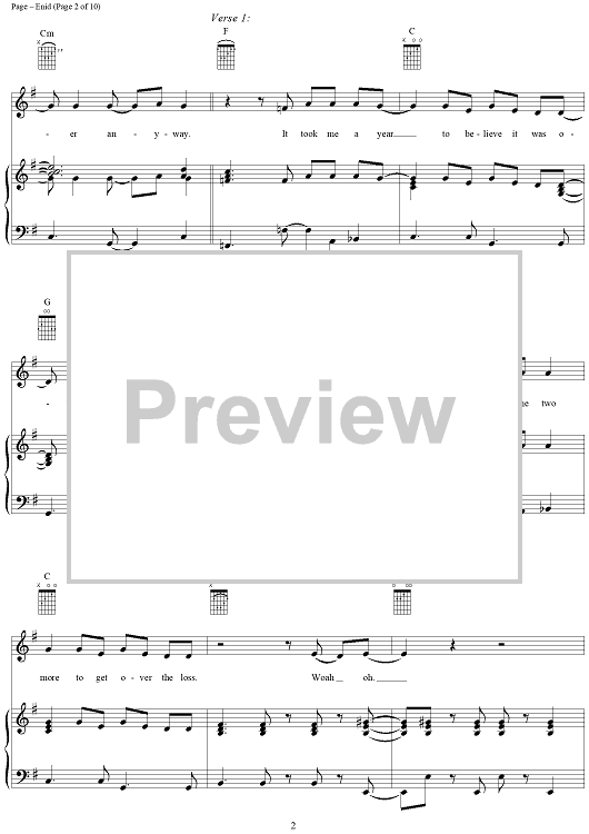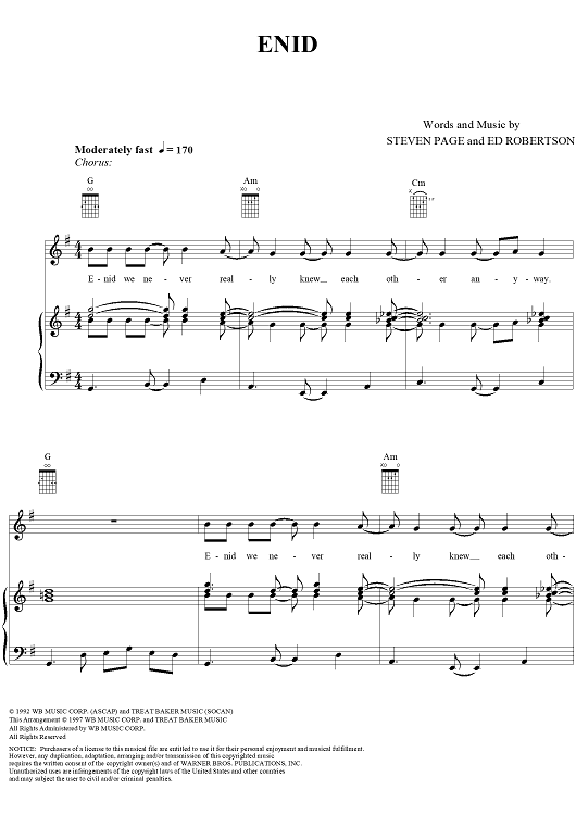 Digital Sheet Music for Enid by Steven Page, Ed Robertson, Barenaked Ladies scored for Piano/Vocal/Chords; id:253940