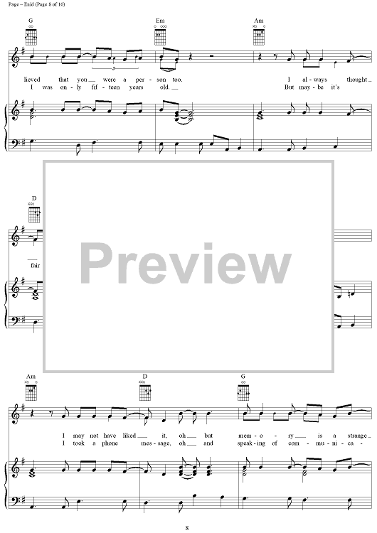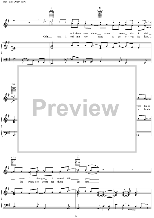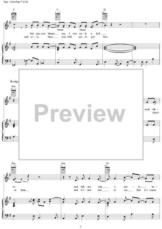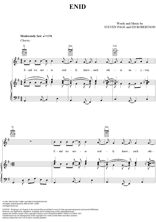Digital Sheet Music for Enid by Steven Page, Ed Robertson, Barenaked Ladies scored for Piano/Vocal/Chords; id:288898