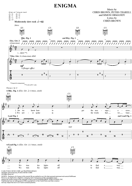 "Enigma" Sheet Music by Trapt