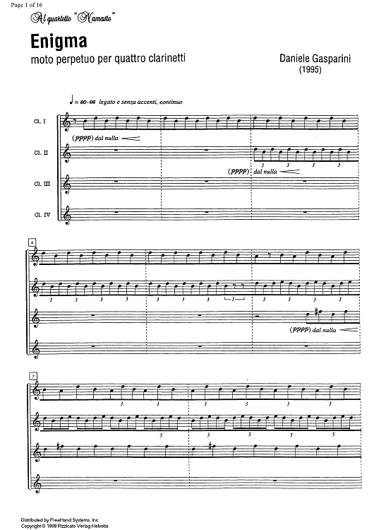 Digital Sheet Music for Enigma - Score by , Daniele Gasparini scored for 4 Clarinets; id:331070