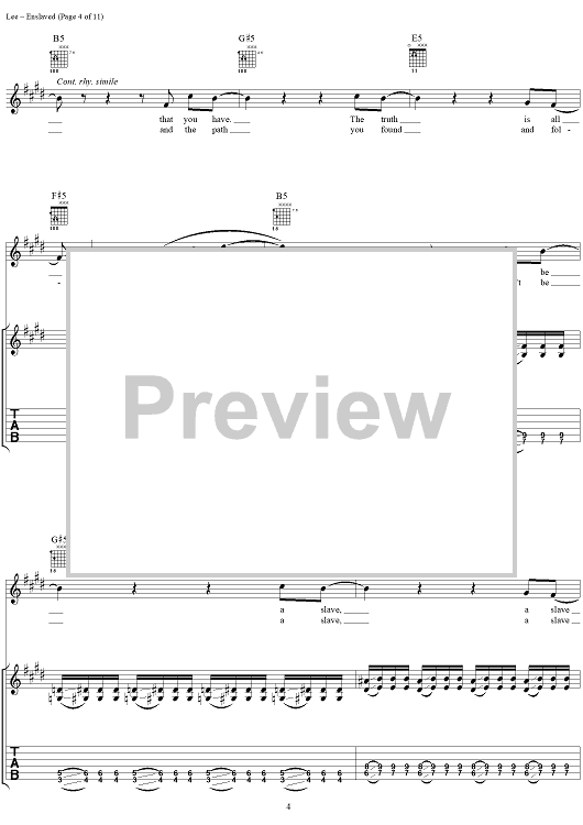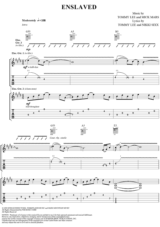 Digital Sheet Music for Enslaved by Mötley Crüe, Nikki Sixx, Mick Mars, Tommy Lee scored for Guitar Tab/Vocal; id:297752