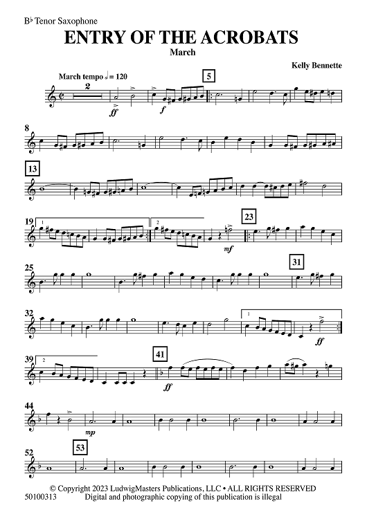 Digital Sheet Music for Entry of the Acrobats - Bb Tenor Saxophone by Kelly Bennette scored for Concert Band; id:507361