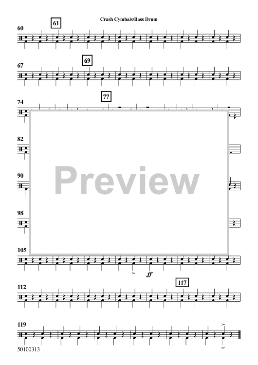 Digital Sheet Music for Entry of the Acrobats - Crash Cymbals / Bass Drum by Kelly Bennette scored for Concert Band; id:507376