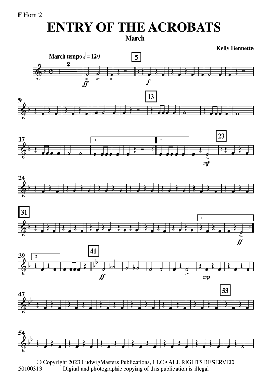"Entry of the Acrobats - F Horn 2" Sheet Music by Kelly Bennette