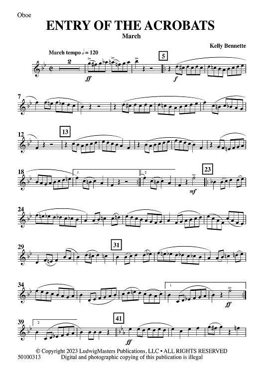 Digital Sheet Music for Entry of the Acrobats - Oboe by Kelly Bennette scored for Concert Band; id:507351