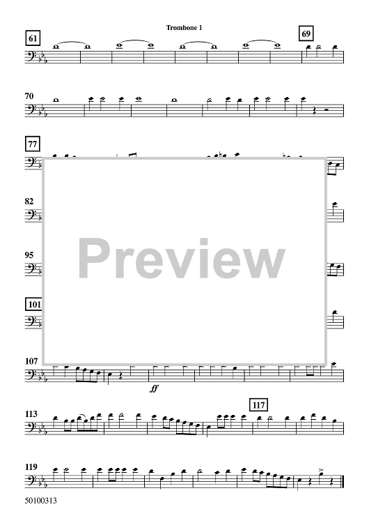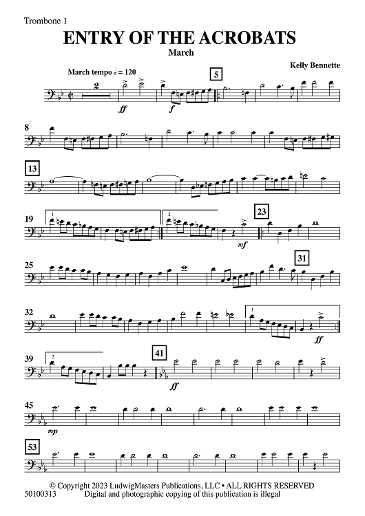Digital Sheet Music for Entry of the Acrobats - Trombone 1 by Kelly Bennette scored for Concert Band; id:507370