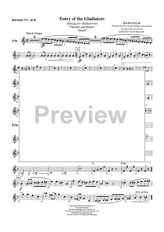 "Entry Of The Gladiators - Baritone TC" Sheet Music by Julius Fucik