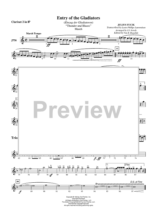 Digital Sheet Music for Entry Of The Gladiators - Clarinet 2 in B-flat by Julius Fucik, J.S. Seredy scored for Concert Band; id:407543