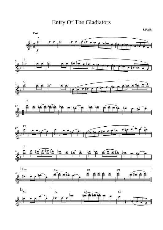 Digital Sheet Music for Entry Of The Gladiators by Julius Fucik scored for Lead Sheet; id:380929