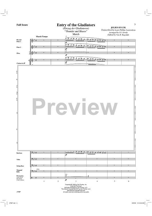 "Entry Of The Gladiators - Score" Sheet Music by Julius Fucik