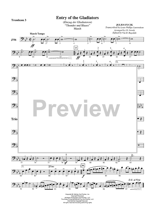 Digital Sheet Music for Entry Of The Gladiators - Trombone 3 by Julius Fucik, J.S. Seredy scored for Concert Band; id:407562